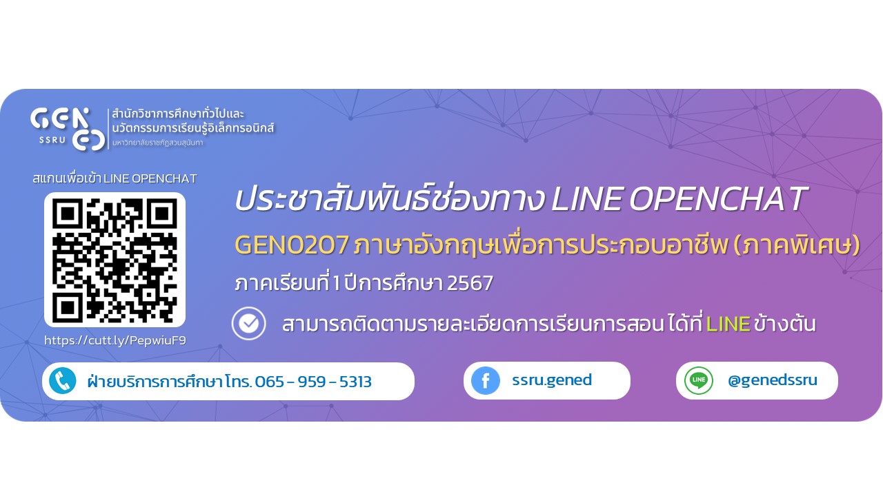 GEN0207 ภาษาอังกฤษเพื่อการประกอบอาชีพ