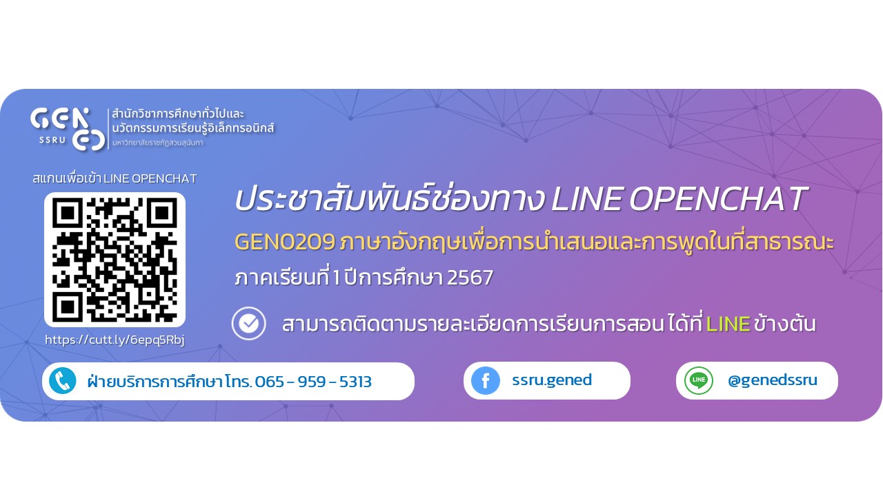 GEZ0206 ภาษาอังกฤษเพื่อการนำเสนอและการพูดในที่สาธารณะ